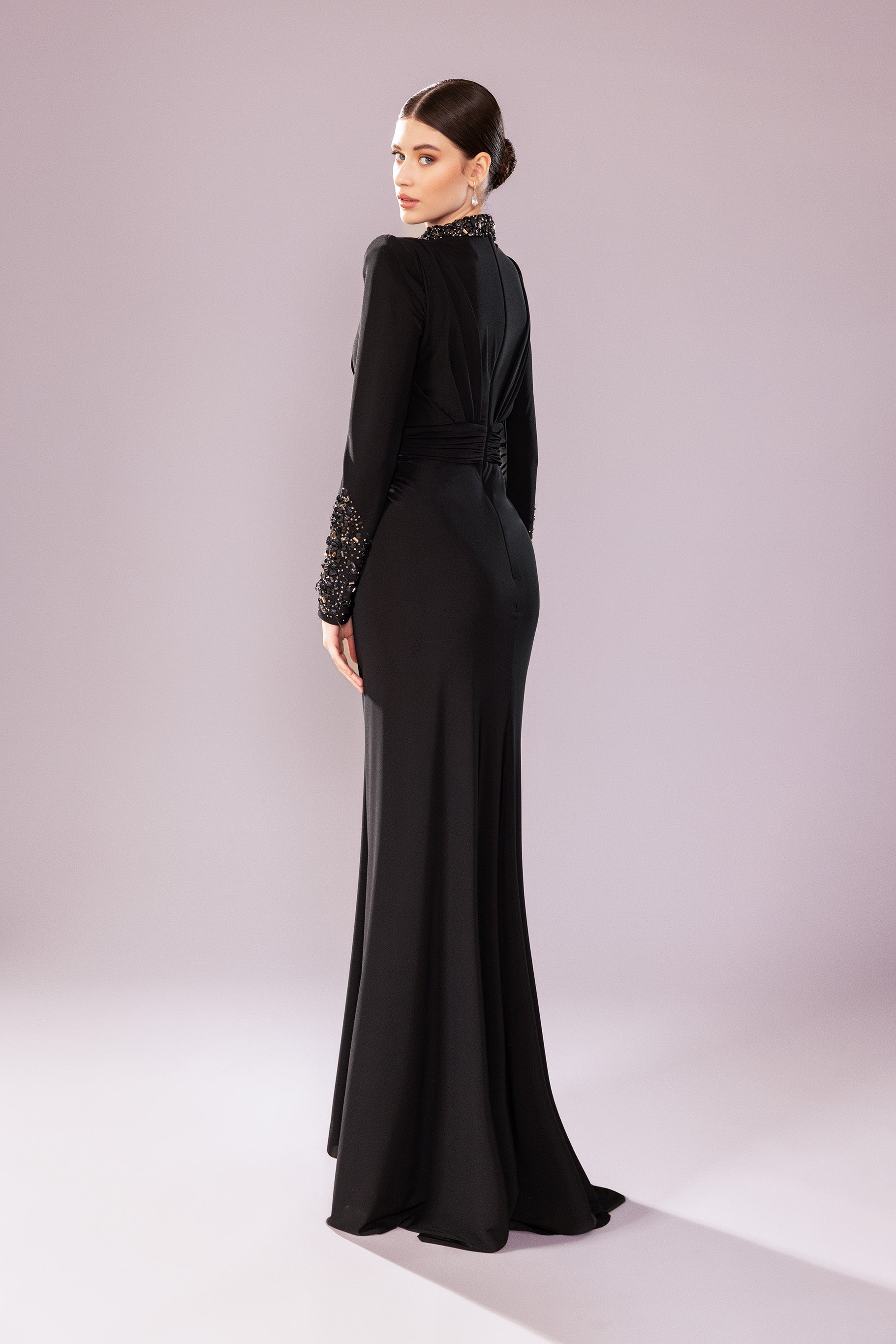 Cette robe Atenea allie sophistication et modernité grâce à ses manches délicatement fendues, qui apportent une touche d'élégance subtile et raffinée. Parfaitement structurée, elle souligne la silhouette avec grâce, idéale pour des occasions où style et distinction sont de mise.