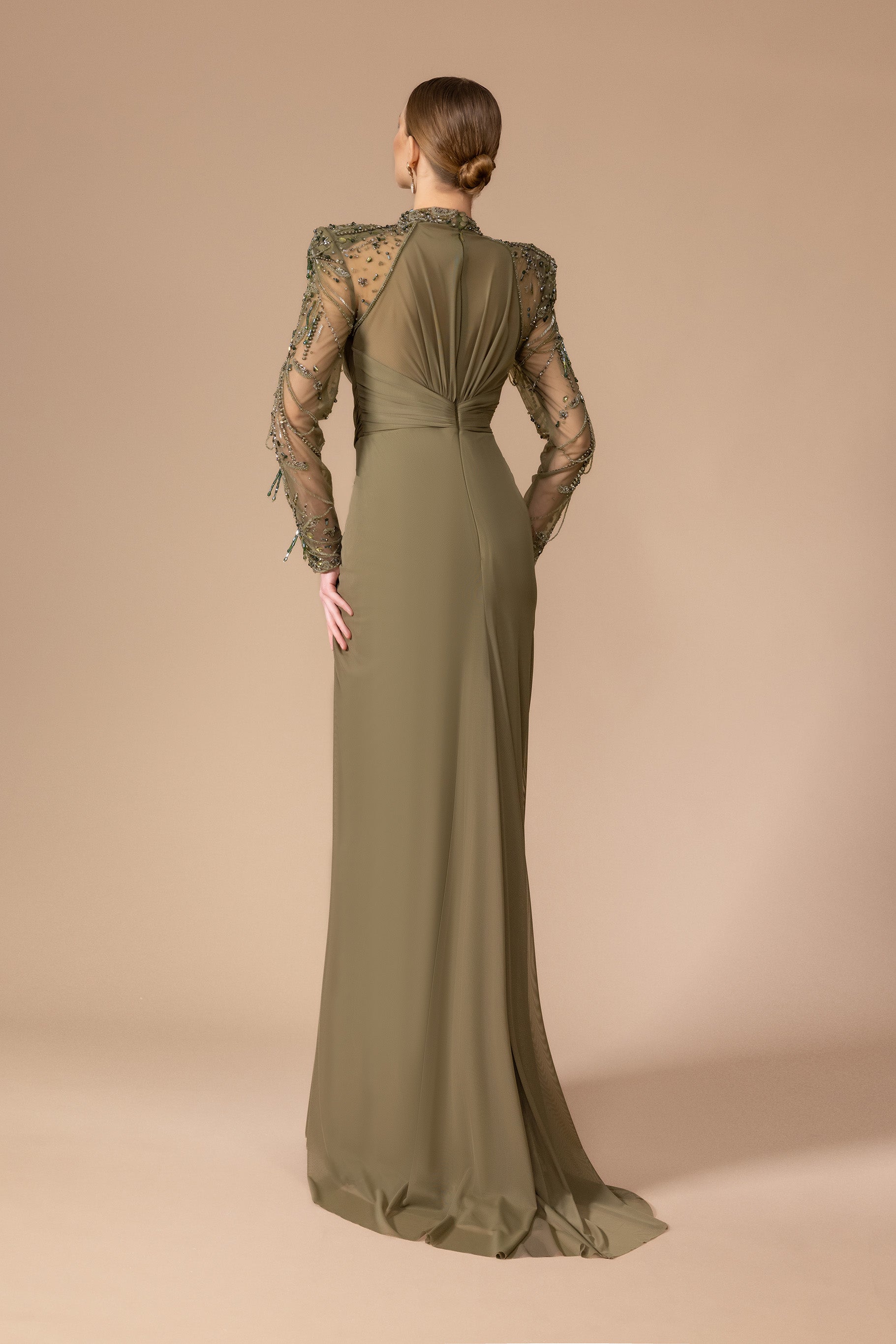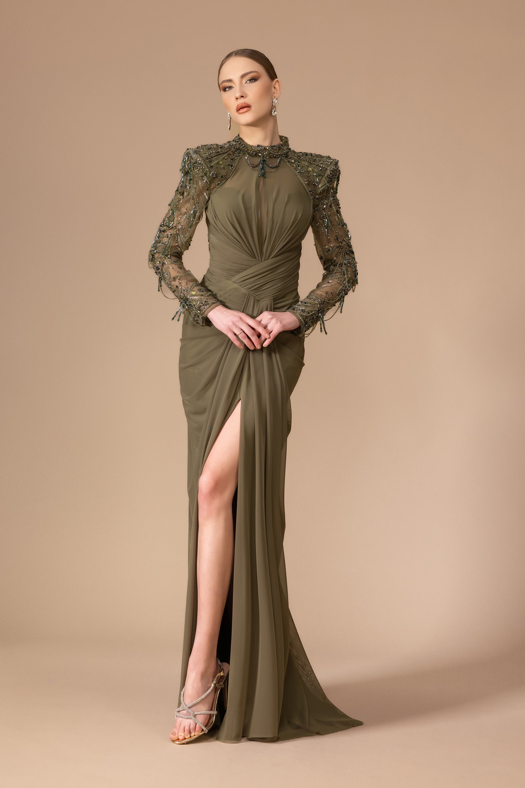La robe Melinda se distingue par ses manches brodées de cristaux qui captent la lumière avec élégance. Son col travaillé et la fente raffinée de la robe apportent une touche sophistiquée, sublimant la silhouette. Conçue pour allier glamour et modernité, cette pièce incarne le savoir-faire expert pour des occasions exigeant un style affirmé.