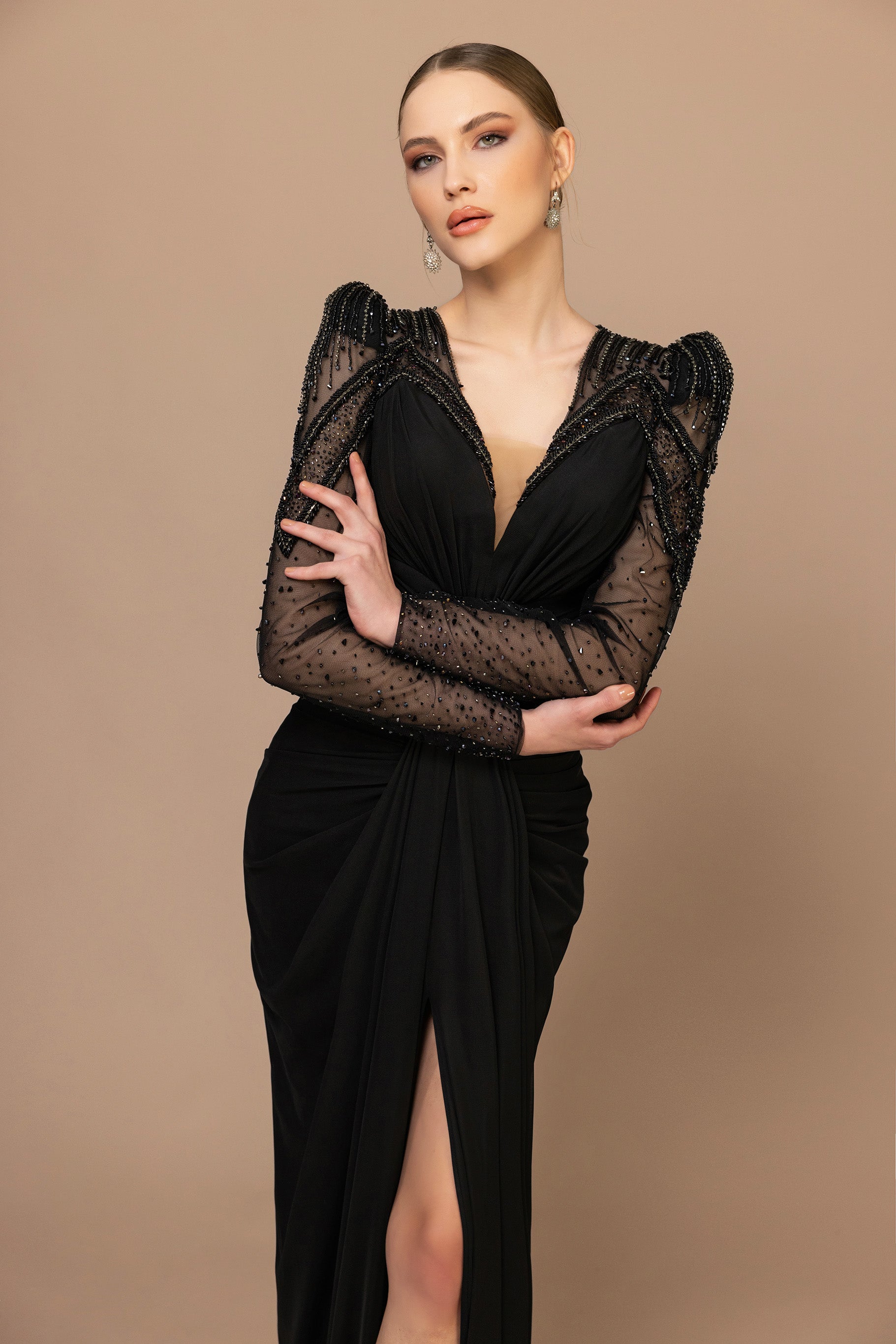 La robe Serena allie élégance et raffinement grâce à ses manches ornées de détails brodés délicats. Cette finition subtile met en valeur la silhouette tout en apportant une touche sophistiquée, parfaite pour toutes les occasions où charme et distinction sont de mise.