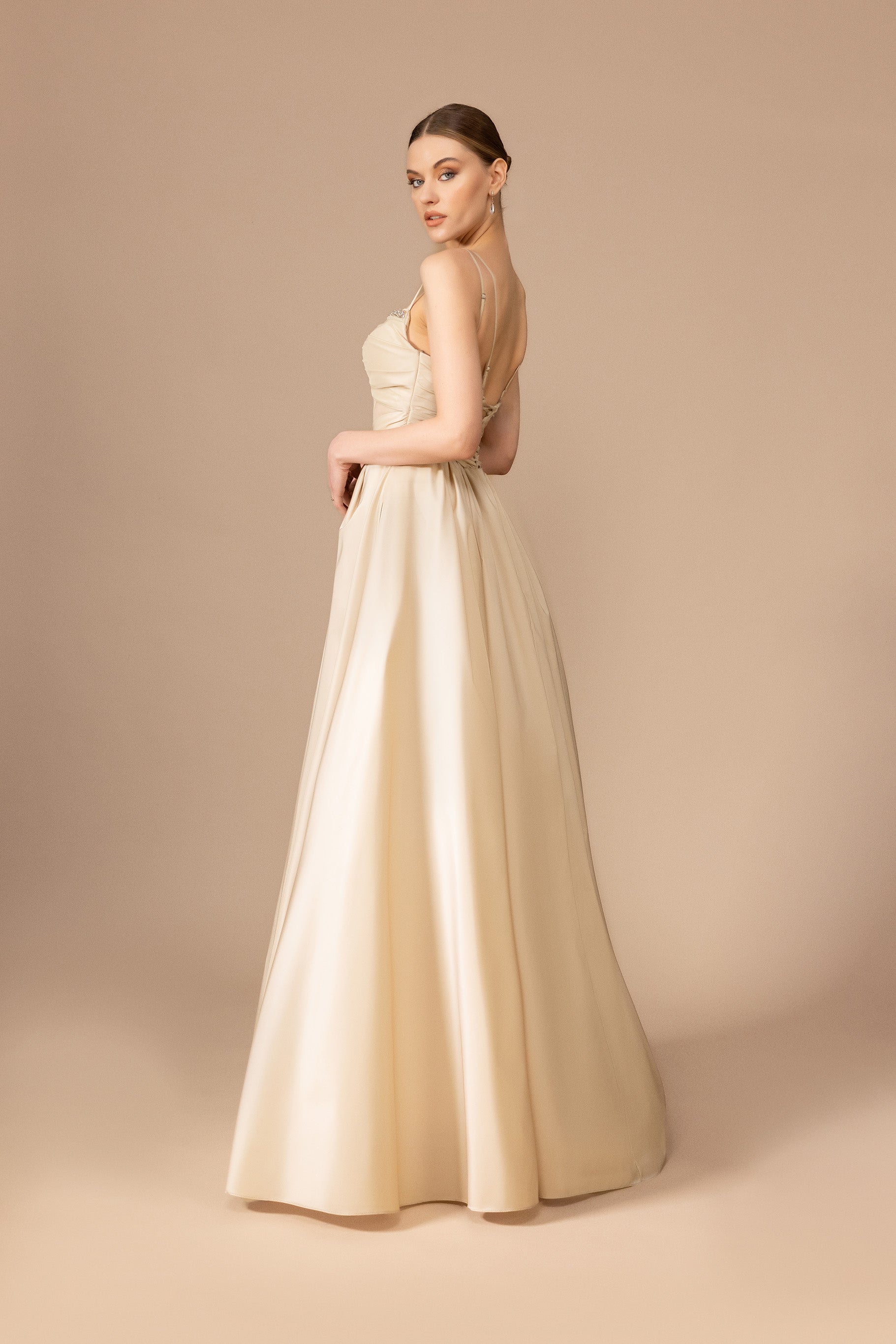 La Robe Victoria se distingue par son corset en coupe basque drapée, qui sculpte élégamment la silhouette tout en offrant un maintien raffiné. Sa conception expert met en valeur la taille avec une structure précise, associée à un drapé fluide qui apporte légèreté et mouvement à la pièce. Parfaite pour celles qui recherchent un équilibre entre style sophistiqué et confort maîtrisé.